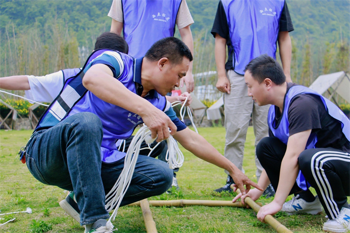 红色团建的模拟担架制作环节,考验的是团队的协作能力与应变能力。在模拟的战争场景中,大家分组合作,利用有限的材料制作担架,用于转移“伤员”。一开始,各小组手忙脚乱,思路不统一,制作过程困难重重。但随着沟通的深入,大家逐渐明确分工,有人负责收集材料,有人负责设计结构,有人负责动手组装。在相互协作、共同努力下,一个个简易却实用的担架制作完成。
