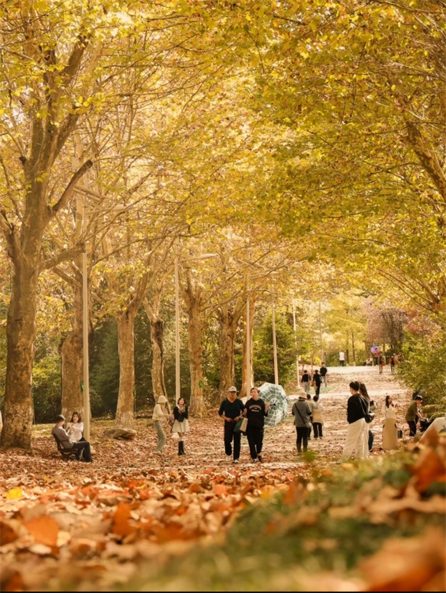 我们避开了商业化的景区,选了一条藏在山谷里的徒步路线——沿途是铺满落叶的松软步道,抬头能看见红枫与银杏交错成的「天然穹顶」,走累了就坐在湖边的岩石上,听风吹过树叶的沙沙声。这里没有拥挤的人群,每一步都能撞见不同的秋景:随手一拍都是不用修图的电影感。